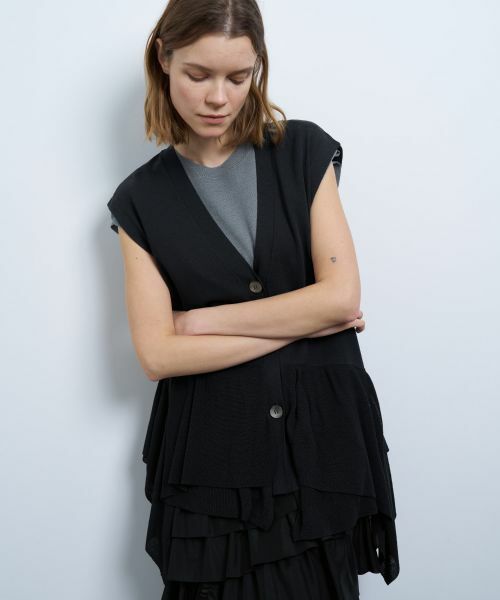 軽く編み上げたアシンメトリーなフリルは、着用した時に動きがでます。