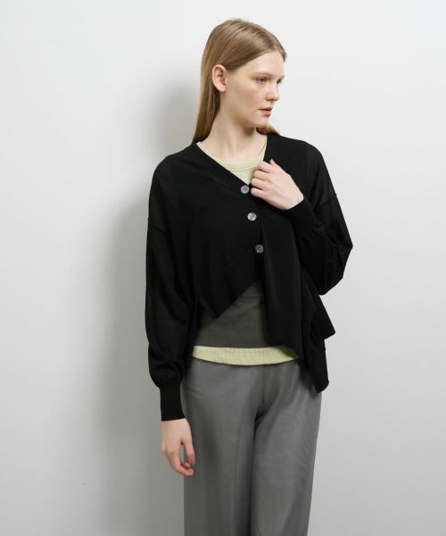 アシンメトリーなヘムラインが印象的なカーディガン。