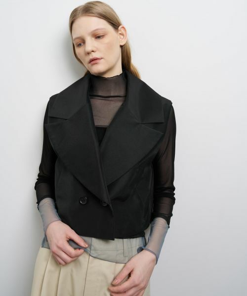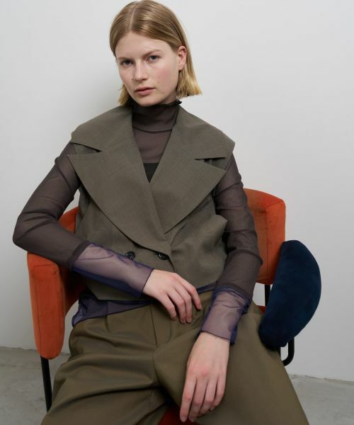 軽やかなシアー素材と絶妙なボックスシルエットで、抜け感のあるレイヤードスタイルを実現。インナーを選ばず着回しが利き、いつものスタイリングにモードなニュアンスをプラスできる1枚です。