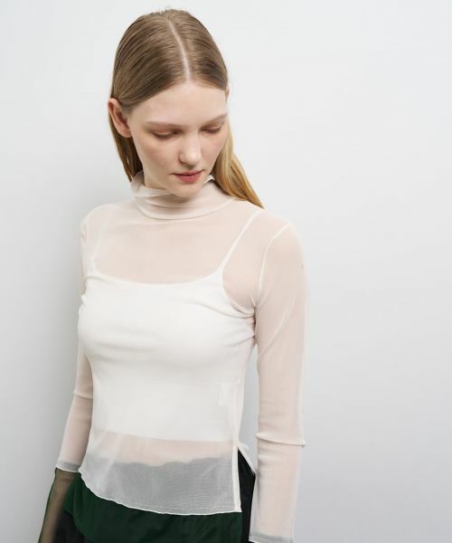 シアー感を活かしてキャミソールやロゴTとのレイヤードを楽しむのがおすすめ。