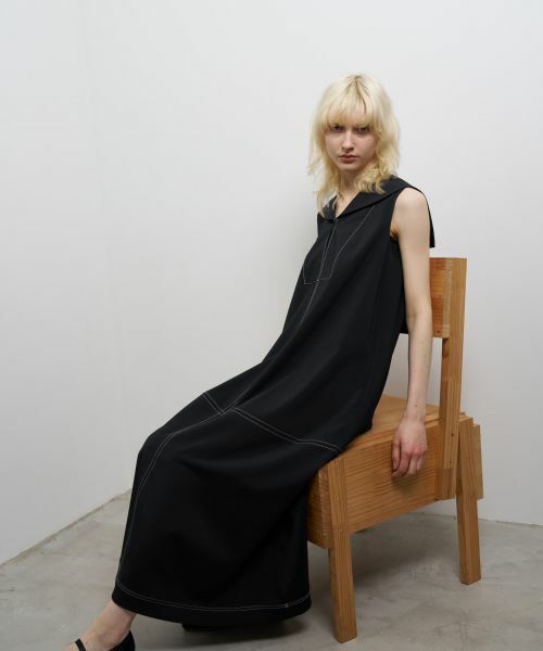 リラクシーなムードにセーラーカラーのディティールが新鮮なバランスのワンピース。美しさと快適性を叶える、体から離れるたっぷりのフレアシルエット。さりげない遊び心が感じられるステッチワークで爽やかなシーズンムードをプラス。計算された胸元の開き具合やアームホールの大きさで、1枚でも気負わずさっと着られるアイテムです。