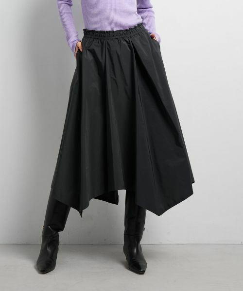 さりげない光沢感がアクセント、軽やかなアシンメトリースカート