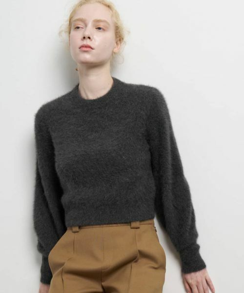 エアリーな毛並みが目を惹くニットカーディガン。ふんわりとしたパフスリーブが女性らしくフェミニンな雰囲気を演出しつつ、長めの袖口リブで甘すぎない絶妙なバランスに。全体的にコンパクトな丈感なので、着るだけできちんと感が生まれ、スタイルアップ効果も期待できます。