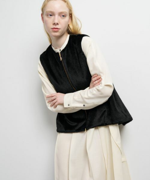 一点投入するだけで、ぐっとシーズンムードが高まるフェイクファーのベスト。