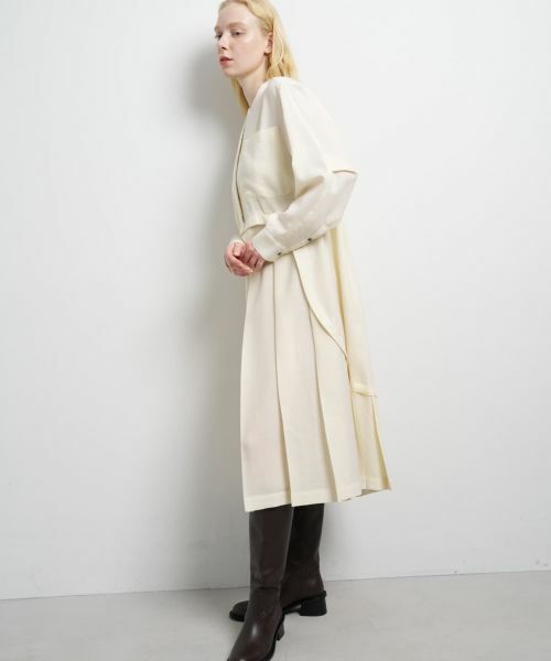 まるで上品なシャツとプリーツスカートをコーディネートしたかのような、ドッキングデザインのワンピース。