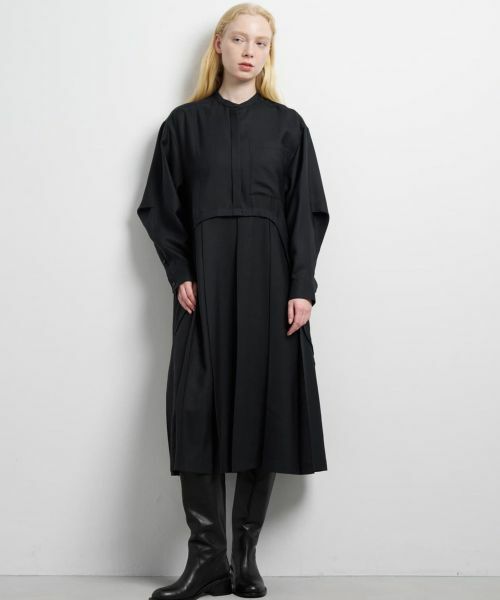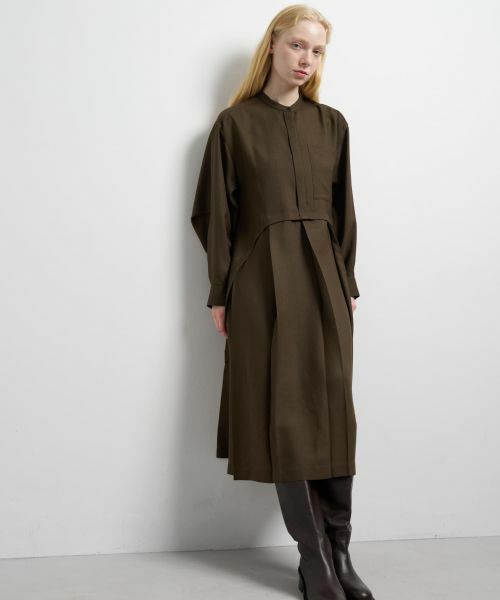 一枚着るだけで洗練されたスタイリングが完成するのが最大の魅力。クラシックでクリーンな印象のスタンドカラーが、顔周りをすっきりと見せてくれます。袖はカーブラインで構成された立体的なシルエットになっており、さりげないデザイン性が光るアクセントに。ゆったりとした着心地で、リラックス感がありながらも上品な佇まいを叶えます。