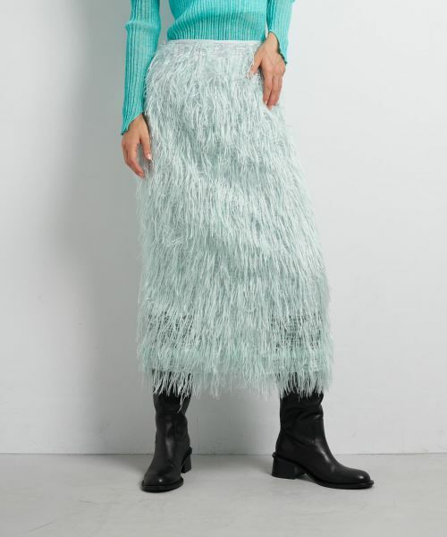 スタイリングを瞬時にモードな雰囲気へと導く、特別なフェザージャガードスカート。