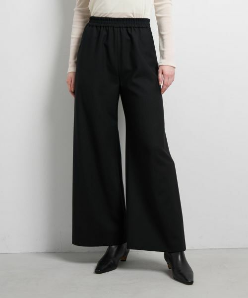 ウエストはゴム仕様で着脱もイージーながら、ギャザーを控えめに仕上げることで、きちんと感をキープ。脚のラインを拾わず、きれいなシルエットで自然に体型カバーができる頼れる一本です。