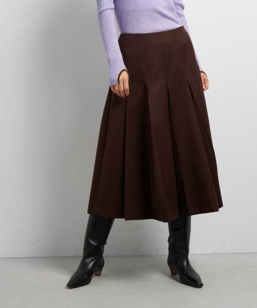 太幅のプリーツが印象的なミディ丈スカート。ウエスト周りはプリーツをステッチで押さえ、すっきりとしたシルエットです。