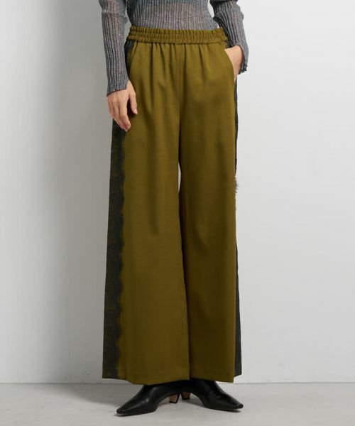 繊細なスカラップレースをサイドにあしらった、ストレートワイドパンツ。