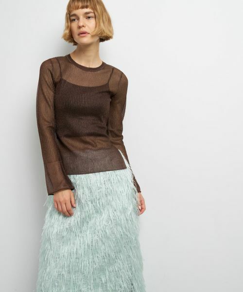 フレアカフスが印象的なシアーリブニットは、着るだけで軽やかさと女性らしさを両立。
