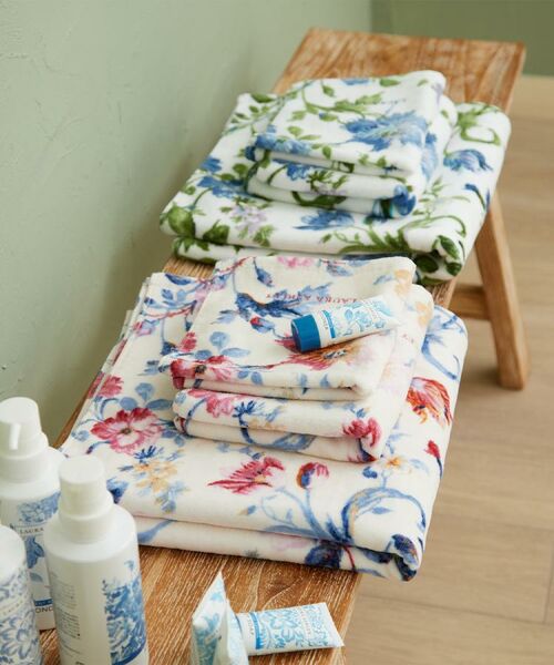 英国のカントリーガーデンからインスパイアを受けた、タイムレスでロマンチックな「ローザリンド」柄のシャーリングプリントタオル。