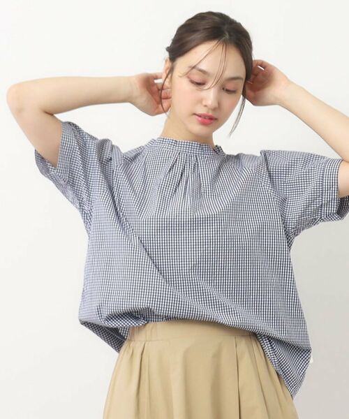 小さな衿がきちんと感を演出をする、スタンドカラーブラウスです。
