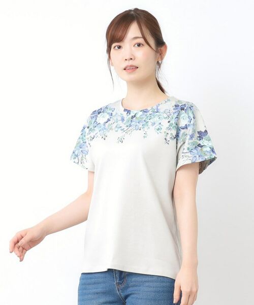 鮮やかな発色のプリントで、一枚着るだけで華やかな印象に。