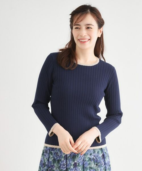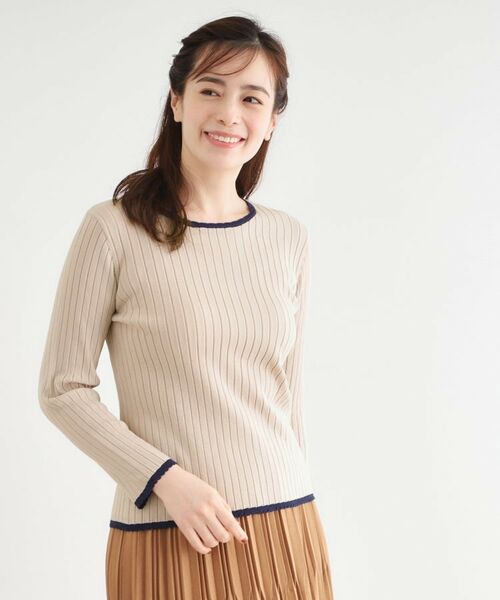 やわらかいナイロンコットン糸を使用しリブ状に編み上げたニットプルオーバー。
