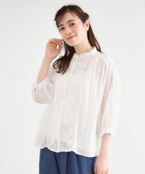 立体感のある繊細な刺繍を身頃に施したブラウスです。