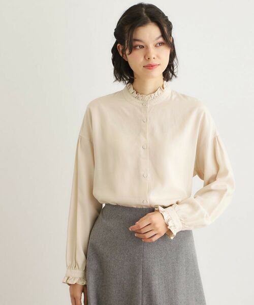 ややツヤのあるセルロース生地の優しい風合いがフリルを引き立てます。
