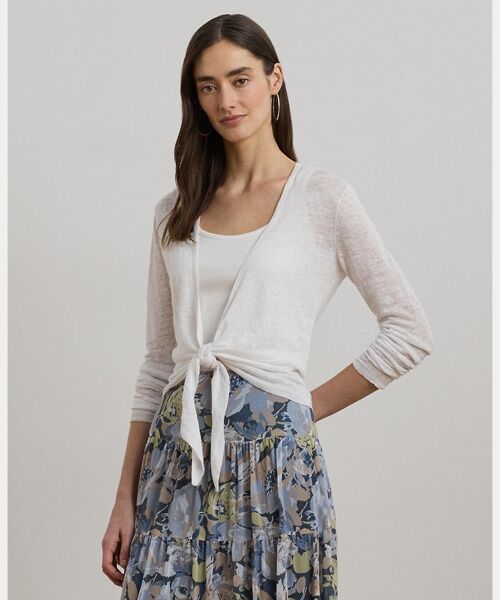 フロントを自分で結んで着用することも、前開きで着ることもできる、薄手のリネンカーディガン。スタイリッシュで着回しの効く重ね着アイテム。・リラックスフィット / 腰上丈・オープンシルエット / 裾にあしらった共生地の長めのタイは、フロントで結ぶことも前開きにすることも可能・長袖、リブカフス・リブの裾・モデル身長178cm、着用サイズS※商品の色味は、光のあたり具合など諸条件により色感が多少異なって見える場合がございますので予めご了承下さい。