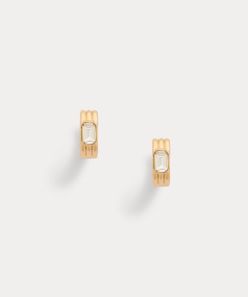 14Kの金メッキ、輝く模造石、モダンなリブのシルエットで、定番のフープピアスをLauren Ralph Laurenらしくアレンジ・クリックトップ留め※商品の色味は、光のあたり具合など諸条件により色感が多少異なって見える場合がございますので予めご了承下さい。※一部仕様が画像と現物で異なる場合がございます。