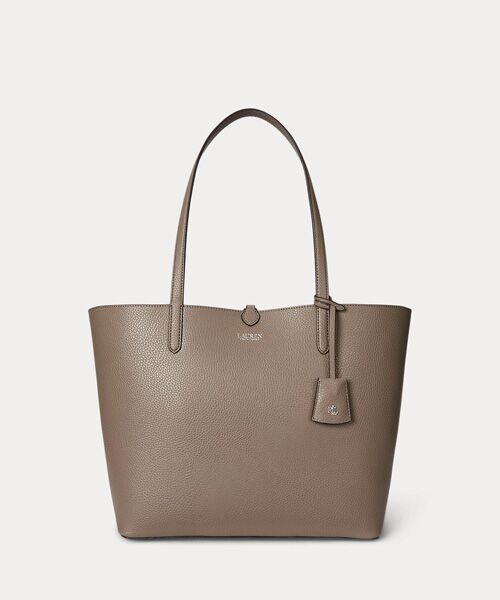 リバーシブルスタイルと、フォイルプリントのロゴやLauren Ralph Laurenのデボス加工を施した取り外し可能なラゲージタグといったシグネチャーのディテールが魅力的な、ペブルドフェイクレザーのトートバッグ。片面に上品なチェックモチーフをあしらった、どんな装いにも合わせやすい汎用性の高いアイテム。