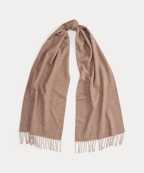 ヘリンボーンパターンがさりげないテクスチャーと洗練されたスタイルを生み出すスカーフ。ラグジュアリーで柔らかなウールとカシミヤの混紡素材を使用。さりげない遊び心をプラスする布端のフリンジに加え、LRL Ralph Laurenのロゴ刺繍を施すことで、シグネチャーのLauren Ralph Laurenの仕上がりを演出。