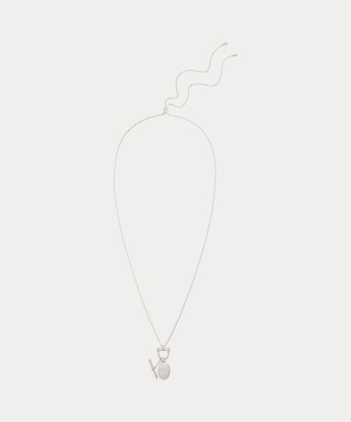 Ralph Laurenのエクエステリアン風スピリットを表現した、シルバーメッキのネックレス。スティラップ型のペンダント、トグルチャーム、トラディショナルなブランケットのステッチを思わせるエッチングでディテールを添えたロゴペンダントが印象的なデザイン。好きな長さに調整できるスライダークラスプで仕上げたアイテム。・調節可能なスライダー留め※商品の色味は、光のあたり具合など諸条件により色感が多少異なって見える場合がございますので予めご了承下さい。