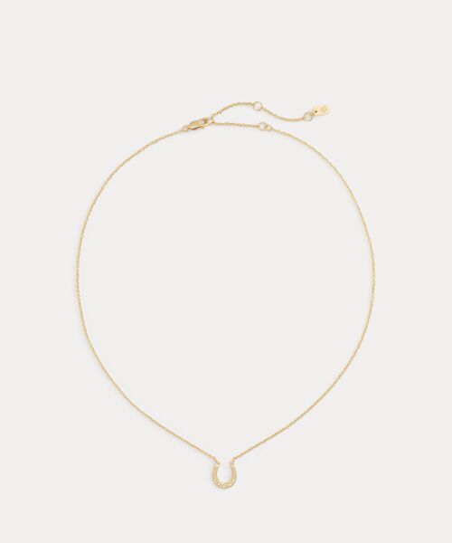 細身のケーブルチェーンに、パヴェセットのクリスタルをあしらった蹄鉄のペンダントを配したデザイン。Ralph Laurenのアイコニックなエクエステリアン風の美学を反映したアイテム。・ロブスタークラスプ留め※商品の色味は、光のあたり具合など諸条件により色感が多少異なって見える場合がございますので予めご了承下さい。