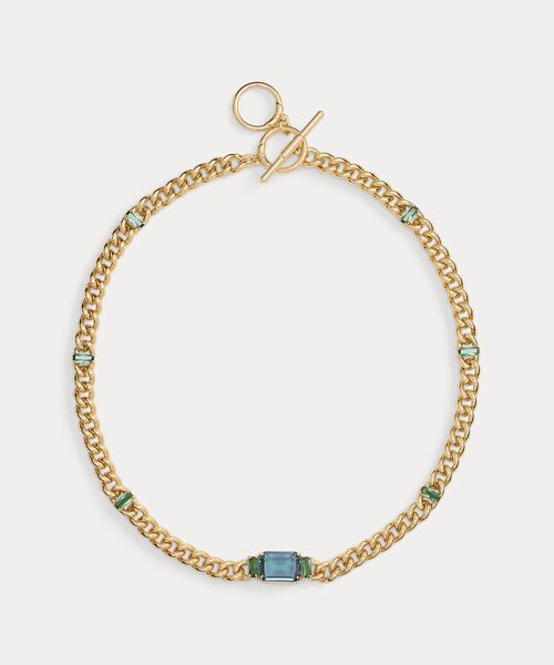 モダンな魅惑が際立つカラーネックレス。きらめく模造石をあしらったカーブリンクチェーンが特徴のアイテム。・トグル留め・14Kの金メッキを施したブラス、亜鉛、スティール、人工素材※商品の色味は、光のあたり具合など諸条件により色感が多少異なって見える場合がございますので予めご了承下さい
