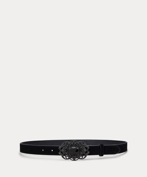 ベルベットのようなスエードで仕立てたスキニーベルト。模造石の装飾を施した飾りバックルをあしらったアイテム。なめらかな仕上がりが際立つフルグレインレザーを裏地に使用し、このスタイルのラグジュアリーな個性を演出。・幅1(約2.5cm)・石の装飾を施したシングルプロングのブラスバックル・わずかに尖ったティップ・表面の汚れは、きれいな柔らかいブラシで払ってください。※商品の色味は、光のあたり具合など諸条件により色感が多少異なって見える場合がございますので予めご了承下さい。