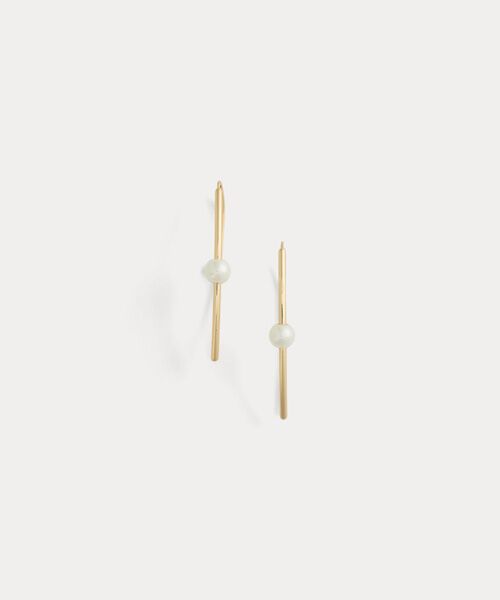 ブラスで仕立てた細身のシルエットに、グラマラスなイミテーションパールをあしらった美しいスレッダーイヤリング※商品の色味は、光のあたり具合など諸条件により色感が多少異なって見える場合がございますので予めご了承下さい。