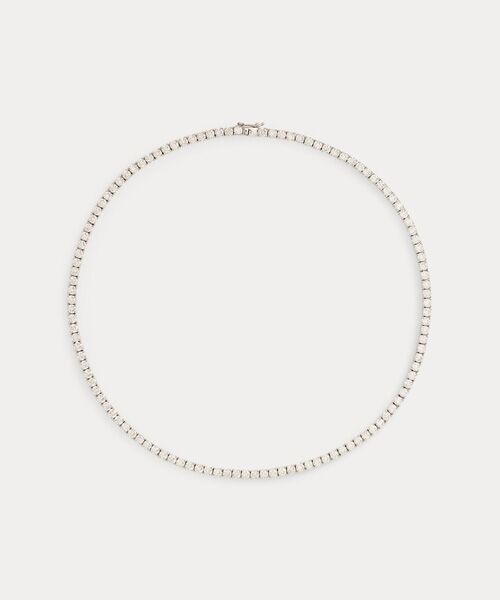 クラシックなテニスブレスレットのデザインを連想させるネックレス。玉虫色のキュービックジルコニアの装飾を施した、ロジウムメッキ加工のシルエットが特徴。カジュアルルックにもフォーマルルックにもぴったりのアイテム。・ボックスクラスプ留め※商品の色味は、光のあたり具合など諸条件により色感が多少異なって見える場合がございますので予めご了承下さい。
