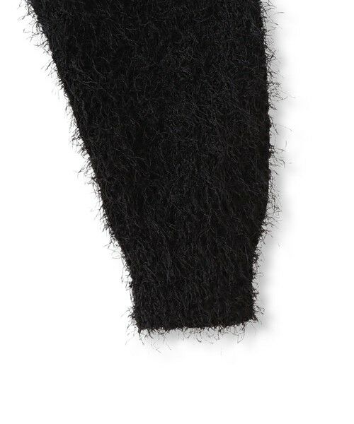 光沢感があり、さらっとした手触りのフェザーヤーンで作った華やかな印象のニットカーディガン。