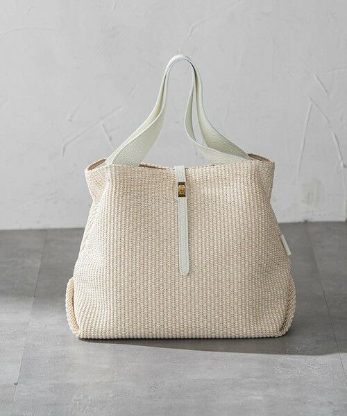 上品な風合いが魅力のラフィア調シートを使用したトートバッグのLサイズ。