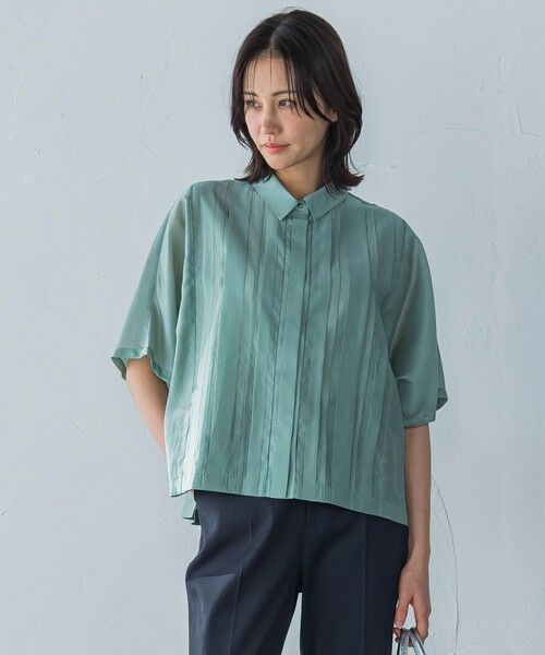 関連ワード:LAUTREAMONT ロートレアモン レディース きれいめカジュアル 大人カジュアル ナチュラル きれいめ キレイめ 上品 シンプル ベーシック 通勤スタイル オフィスカジュアル キャリア オフィススタイル 新作 2025春夏 2025SS 春夏 夏物 夏服 ブラウス コットン ポリエステル シアー クロップド オーガンジー メタルボタン