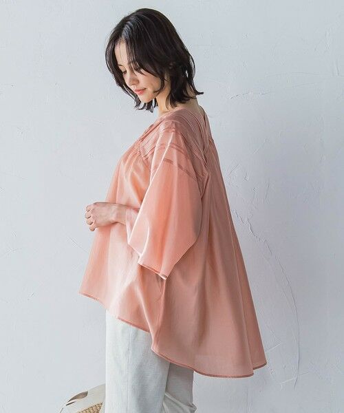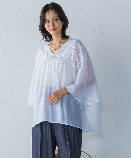 シアー感のある繊細なピンタックとレース使いが特徴のシアーチュニックブラウス。
