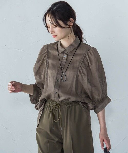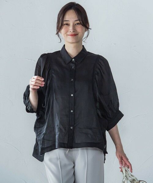 襟付きのデザインがきちんと感をプラスし、シアー素材の軽やかさで春夏らしい抜け感を演出します。