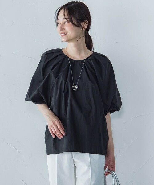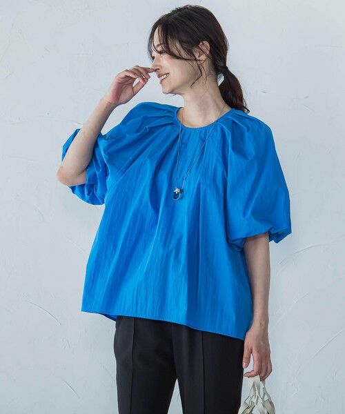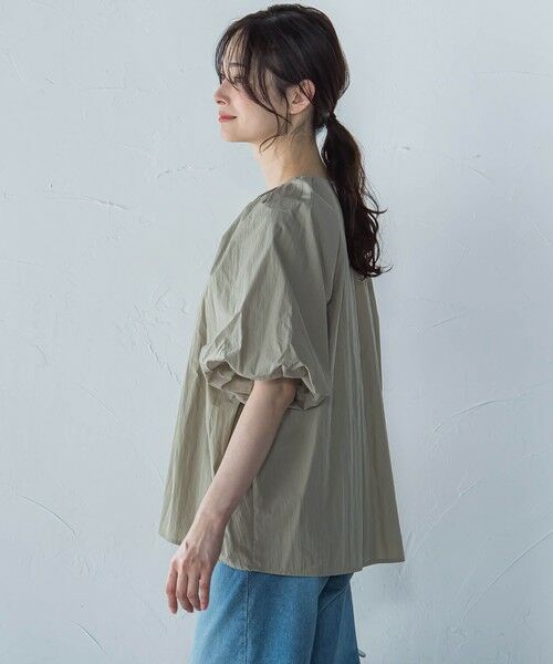 軽やかでナチュラルな風合いが魅力の、綿ナイロンワッシャー素材を使用したブラウス。程よいハリとシワ感が表情をつけ、ふんわりと広がるボリュームスリーブが華やかなアクセントに。気になる腕まわりや体のラインをさりげなくカバーしながらも、着るだけでニュアンスのあるスタイルが完成します。デニムやスラックスと合わせて、カジュアルにもきれいめにも着回せる大人の一枚です。