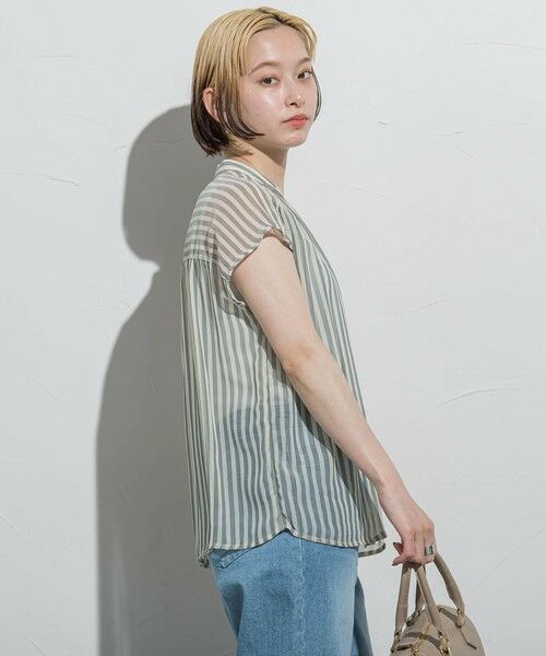 縦ラインを強調するストライプ柄が映える軽やかなブラウス。