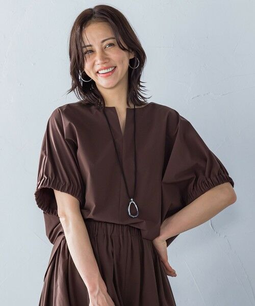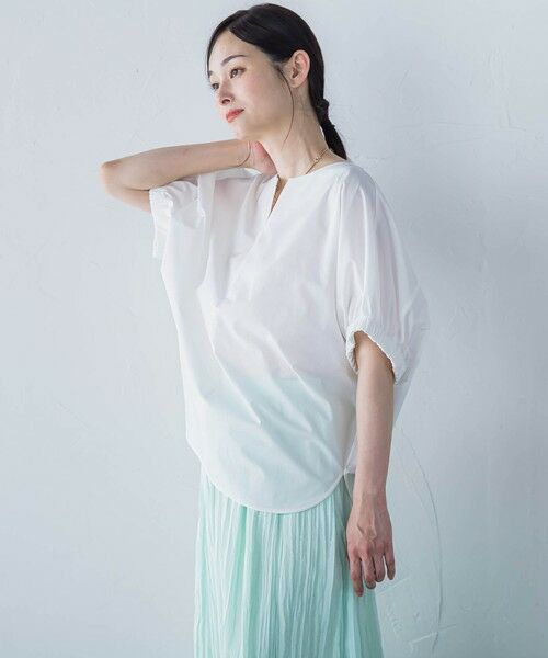 キーホールネックのフォルム袖デザインで1枚でも様になるブラウスです。