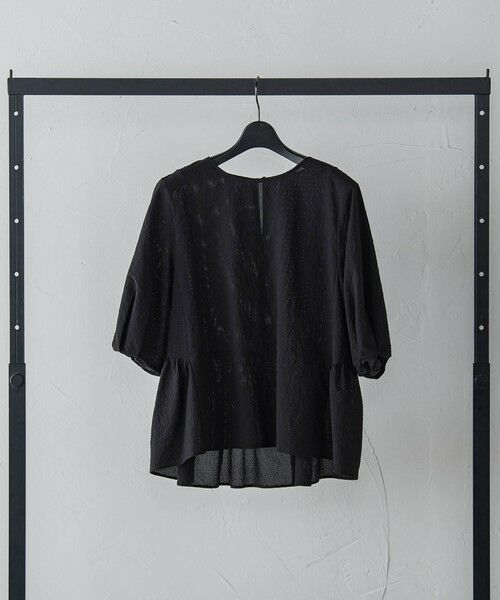 夏に涼しいサッカー調素材のペプラムブラウス。