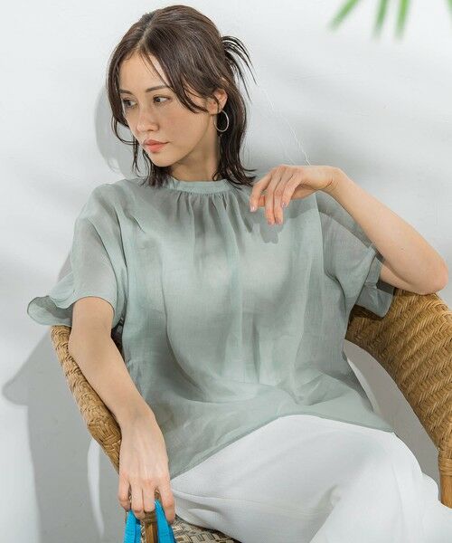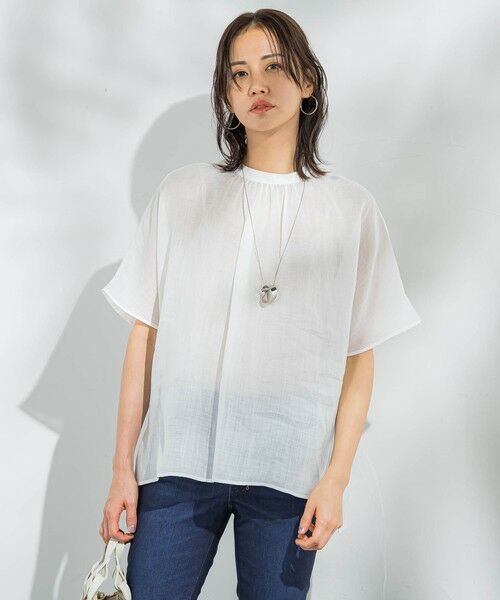 ほんのり透ける軽やかさが魅力のギャザーブラウス。