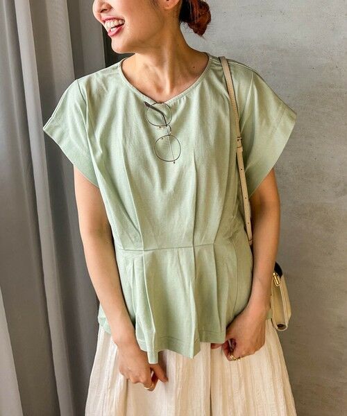 <BLEUBLANC>さらりと軽く、涼やかな着心地が魅力のライトドライ素材を使用。一見シンプルながら、ウエストの切替と自然なペプラムシルエットがさりげなくスタイルアップを叶えてくれます。袖はフレンチスリーブで、二の腕もやさしくカバー。デニムにもスカートにも合わせやすい絶妙な丈感で、Tシャツ以上ブラウス未満の“きれいめカジュアル”が完成します。デイリーにもお出かけにも使える、大人のための万能カットソーです。