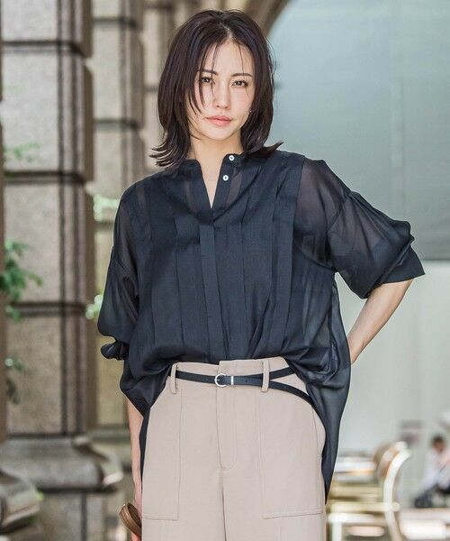 ほんのり透け感のある軽やかな素材に、フロントのピンタックディテールが映える