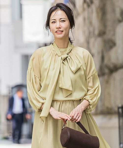 ボウタイを結べばクラシカルで上品な印象に、外せばすっきりとした抜け感のあるスタイルに早変わり。