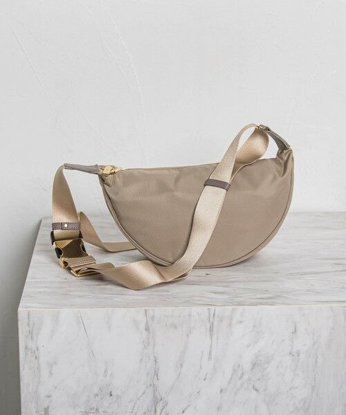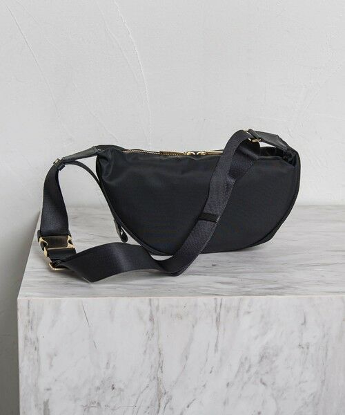 弱撥水性のあるカジュアルなナイロン素材に金具のゴールド使いが女性らしいボディバッグ。