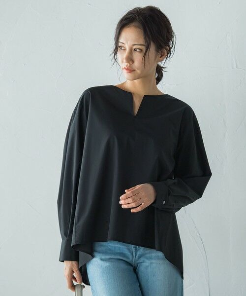 キーネックエアリータックブラウス ≪接触冷感/洗濯機で洗える≫