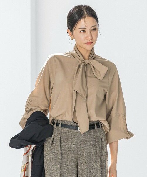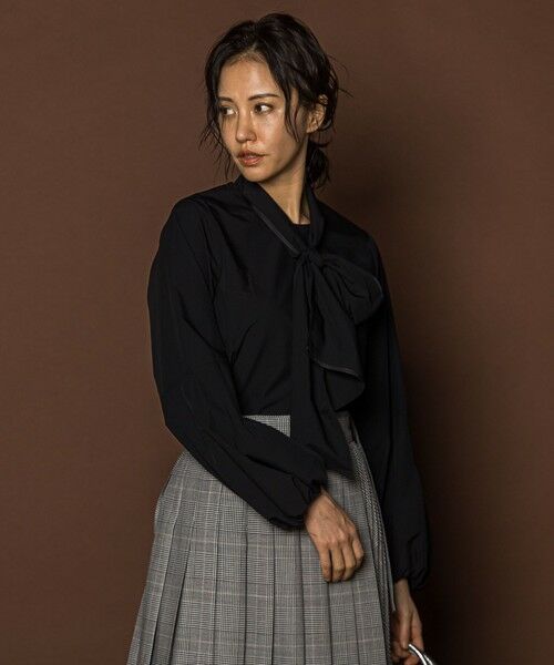 首元のリボンが華やかさを添えるボウタイブラウス。