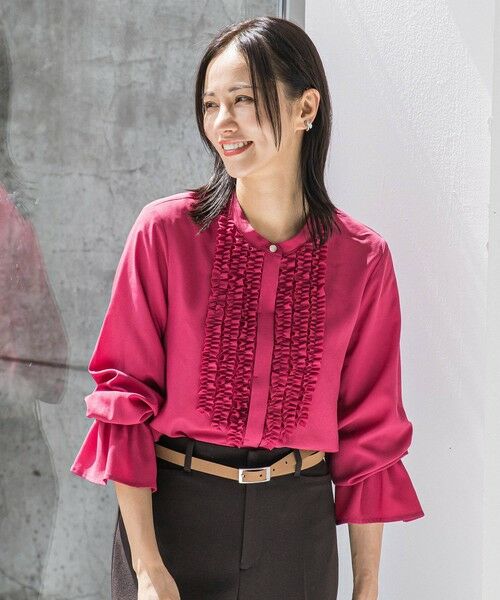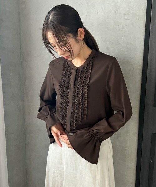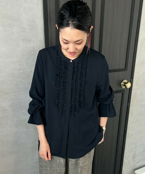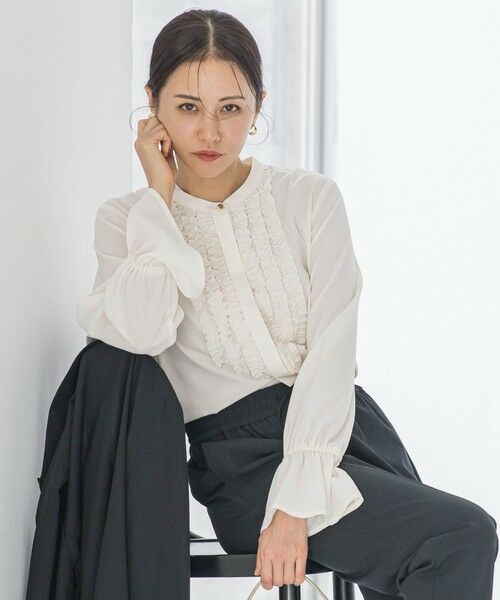 フロントに繊細なフリルをあしらった、大人フェミニンなブラウス。