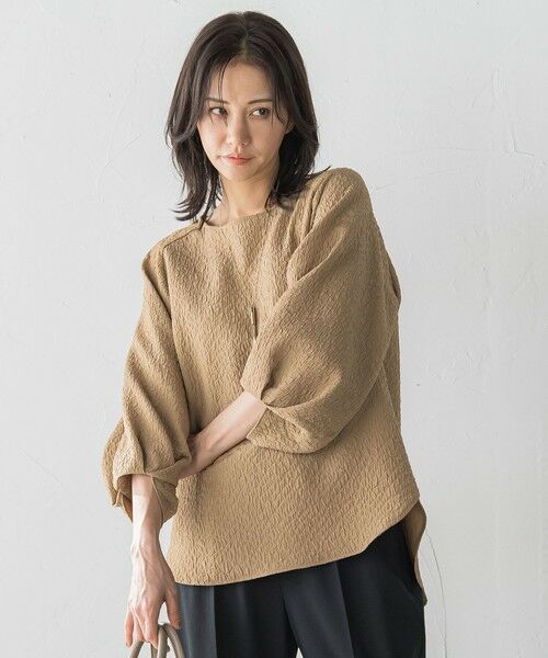 ポコポコとした表情感のあるフクレジャカードが可愛いブラウス。