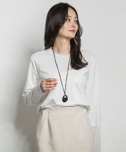 ジャケットのインナーとしても、ボトムにタックインしても決まる一枚。きれいめパンツはもちろん、デニムやスカートとも相性抜群。通勤・休日・旅行まで幅広いシーンで活躍します。